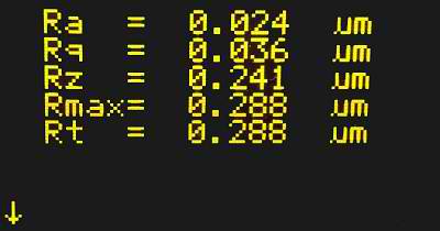 • Roughness parameters: Ra, Rz, Rq (Rms), Rt, Rs, Rsm, Rmax, Rpc, Rmr.